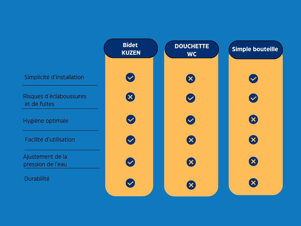 Faites des économies tout en protégeant la planète ! En réduisant considérablement l’utilisation de papier toilette, le kit bidet diminue vos dépenses et préserve les ressources naturelles. Moins de papier, c’est aussi moins de déchets et moins de pollution liée à sa fabrication. Un geste simple, économique et écologique pour un avenir plus propre.